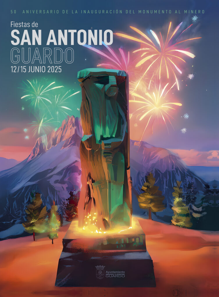 Os presentamos el cartel anunciador de las Fiestas Patronales de San Antonio 2025, que se celebrarán del 12 al 15 de junio. Un cartel festivo con gran colorido que se convierte en un homenaje al 50 aniversario del Monumento al Minero.