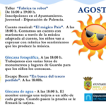 ACTIVIDADES DE LA PROGRAMACIÓN GUARDO ESCULTURA EN LAS PISCINA DE VERANO INFORMÁTE EN LA PISCINA MUNICIPAL PROGRAMACIÓN: Taller “Fabrica tu robot” De 16:00 a 19:00 h. Inscripciones en el Ayuntamiento. Juventud – Diputación de Palencia. Cuento musical: “El mágico País”. Leer más…