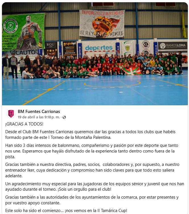 El Club Balonmano Fuentes Carrionas agradece la gran respuesta del público en el torneo celebrado durante esta Semana Santa