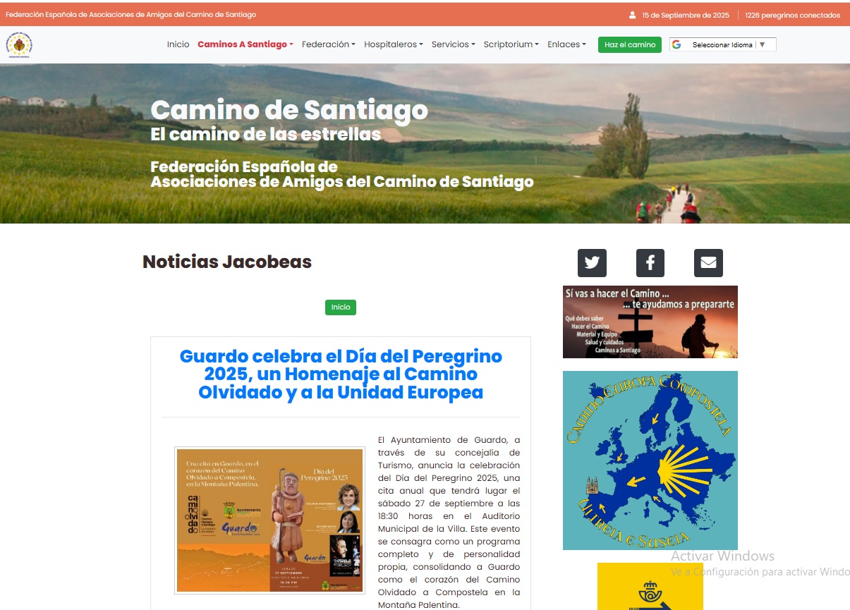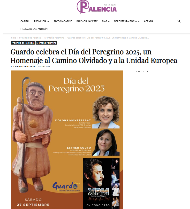Palencia en la red 08.09.25: https://www.palenciaenlared.es/guardo-celebra-el-dia-del-peregrino-2025-un-homenaje-al-camino-olvidado-y-a-la-unidad-europea/