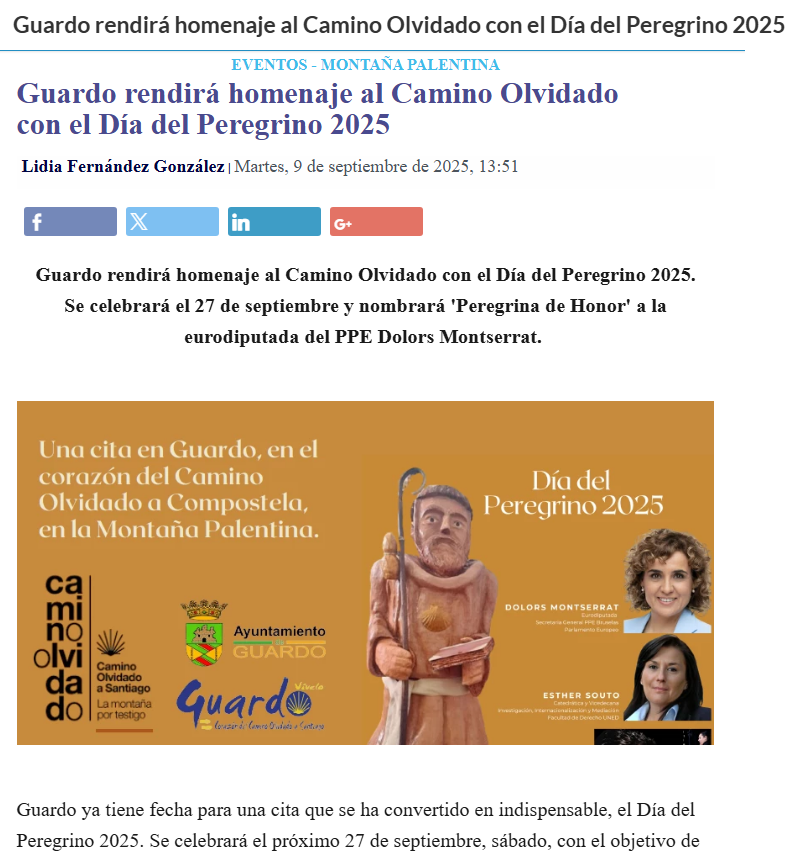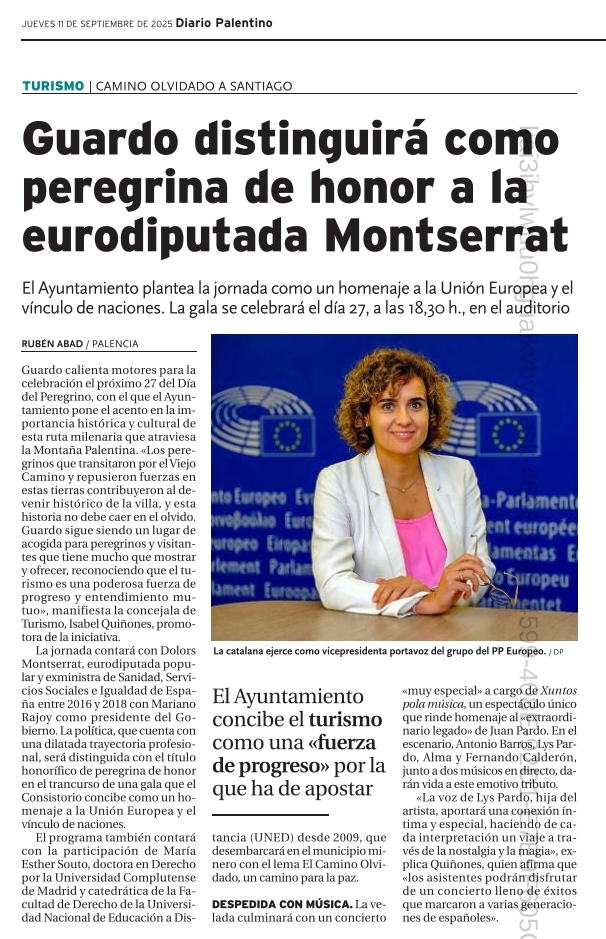 Diario Palentino 11.09.25: https://www.diariopalentino.es/noticia/zaec85dcf-3d69-40dc-84fa9fc8e45a1f26/202509/eurodiputada-dolors-montserrat-peregrina-de-honor-en-guardo