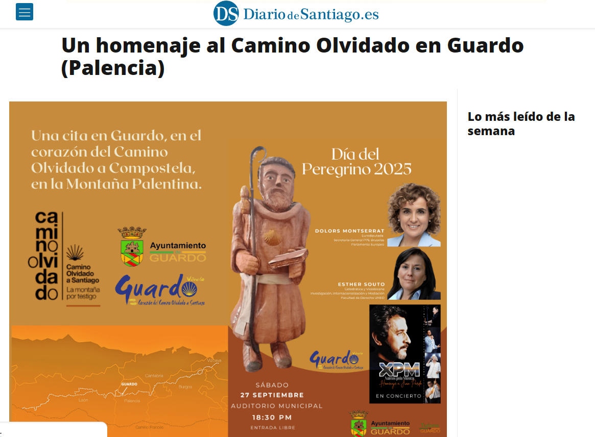 Diario de Valderrueda 09.09.25: https://www.diariodevalderrueda.es/texto-diario/mostrar/5420610/guardo-rendira-homenaje-camino-olvidado-dia-peregrino-2025