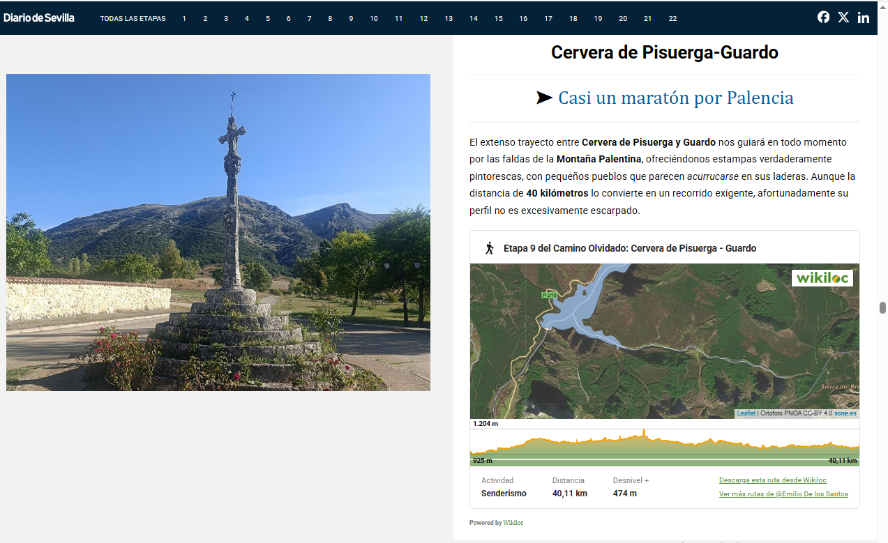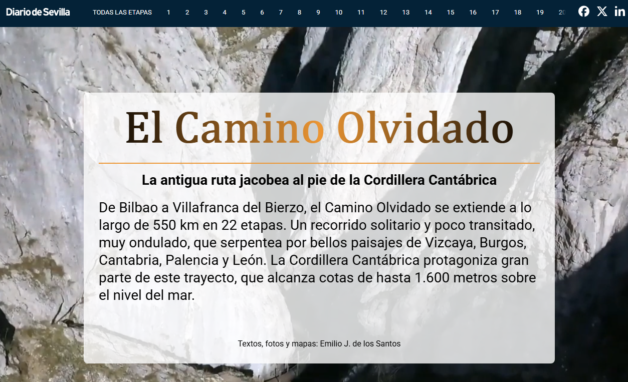De Bilbao a Villafranca del Bierzo, el Camino Olvidado se extiende a lo largo de 550 km en 22 etapas. Un recorrido solitario y poco transitado, muy ondulado, que serpentea por bellos paisajes de Vizcaya, Burgos, Cantabria, Palencia y León. La Cordillera Cantábrica protagoniza gran parte de este trayecto, que alcanza cotas de hasta 1.600 metros sobre el nivel del mar.