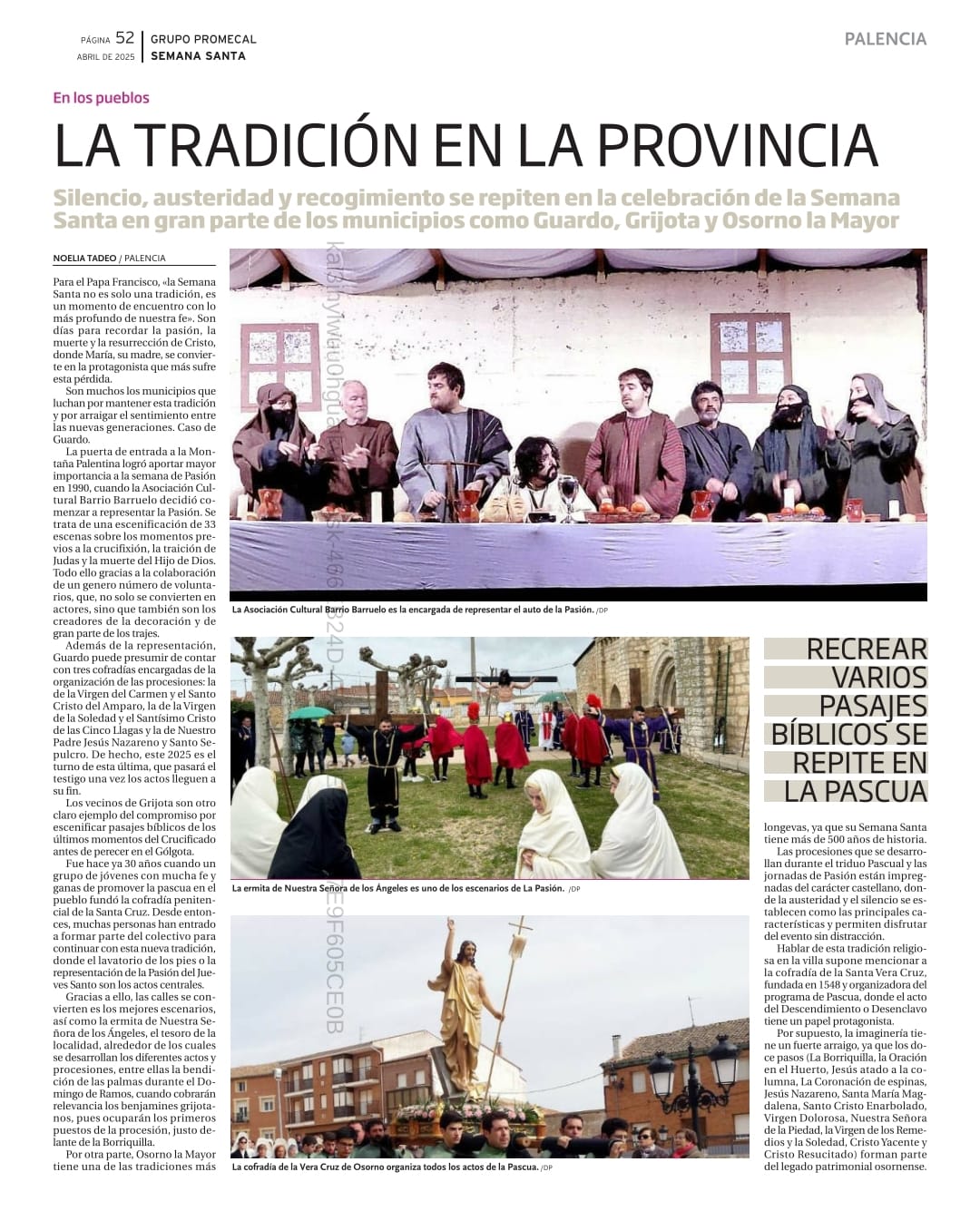 Además de la representación, Guardo puede presumir de contar con tres cofradías encargadas de la organización de las procesiones: la de la Virgen del Carmen y el Santo Cristo del Amparo, la de la Virgen de la Soledad y el Santísimo Cristo de las Cinco Llagas y la de Nuestro Padre Jesús Nazareno y Santo Sepulcro. De hecho, este 2025 es el turno de esta última, que pasará el testigo una vez los actos lleguen a su fin.»
