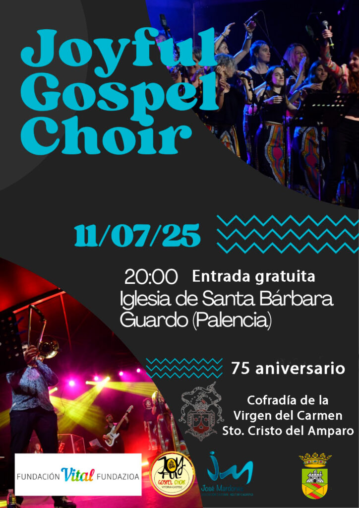 El 11 de julio, a las 8 de la tarde, en la iglesia Santa Bárbara, con entrada gratuita tendremos Joyful Gospel Choir, en conmemoración del 75 aniversario de la Cofradía Virgen del Carmen y Santísimo Cristo del Amparo.