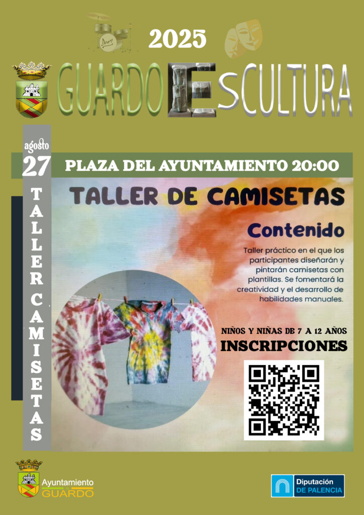 Abrimos plazo para inscribirse en el taller de camisetas del 27 de agosto de la programación Guardo EsCultura. Date prisa, son plazas limitadas para niños y niñas entre 7 y 12 años, los participantes se llevarán la camiseta que diseñen.